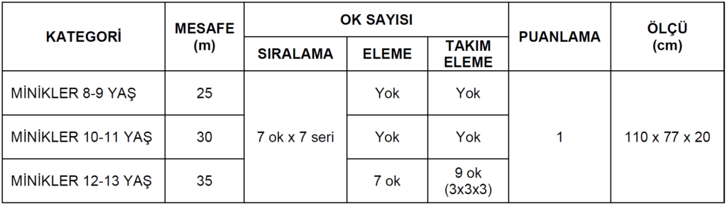 Şampiyona aşağıda belirtilen tabloya göre MİNİKLER kategorilerinde yapılacaktır.