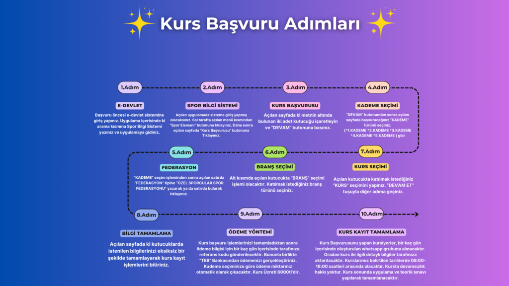 BAŞVURULARI 21 ŞUBAT – 02 MART 2025 TARİHLERİ ARASINDA E-DEVLET SPOR BİLGİ SİSTEMİ ÜZERİNDEN BAŞVURU YAPABİLİRSİNİZ.
