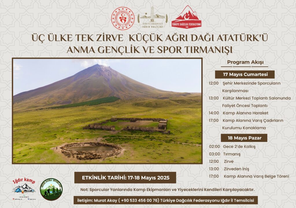 , Murat Akay liderliğinde 17 Mayıs 2025 tarihinde Küçük Ağrı Dağı’na tırmanış gerçekleştirecektir.